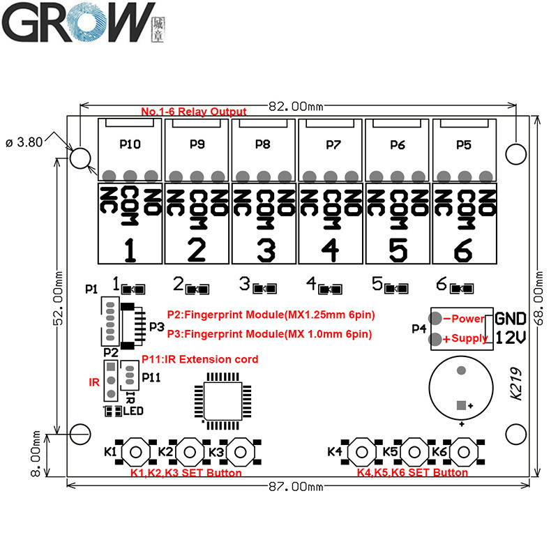 K1-K6 زر SET يتوافق مع رقم 1-6 رلاي1زر الإعداد: